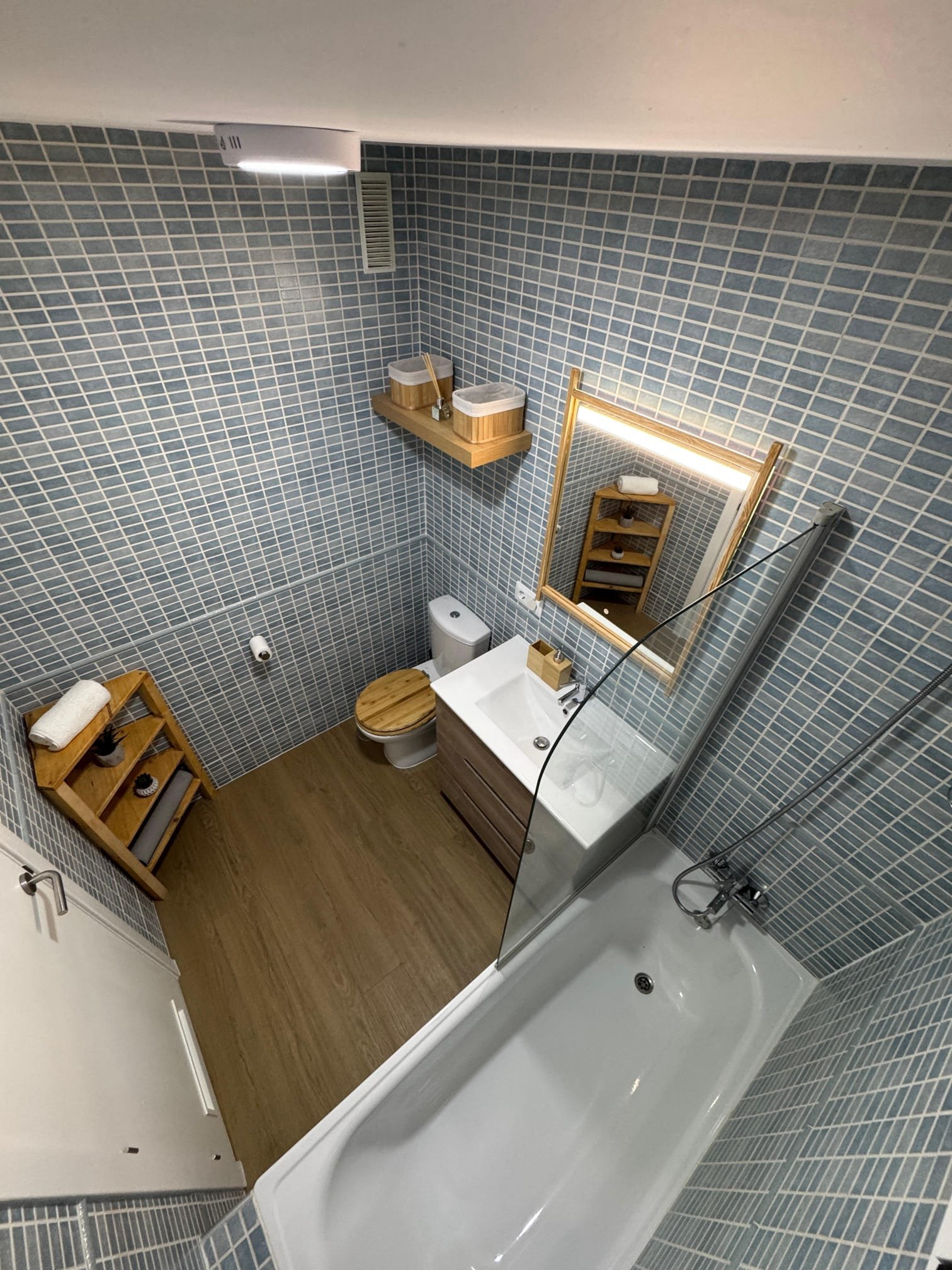 La vivienda dispone de salón con sofá cama para 2 personas, cocina totalmente equipada, 1 dormitorio y 1 baño completo, con capacidad total para hasta 5 personas. Cuenta con Wi-Fi de alta velocidad apto para videollamadas, espacio de trabajo, smart TV y cuna disponible bajo petición y según disponibilidad. Su distribución práctica y ambiente acogedor lo hacen ideal para parejas, familias o pequeños grupos.
